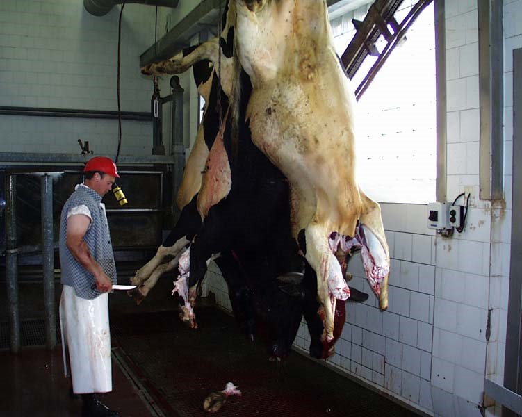Začátek porážkové linky hovězího dobytka